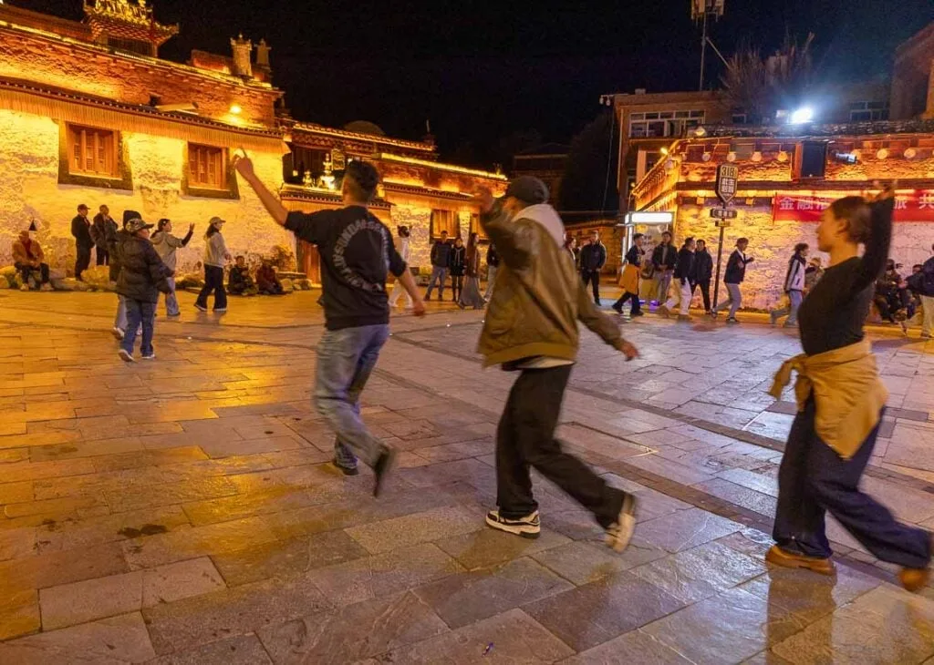 As we stroll back to our hotel,we see people dancing in the square. This small but lively tradition has local people dancing the Guozhuang in a large circle. It’s very casual with people joining and leaving at will and very charming.