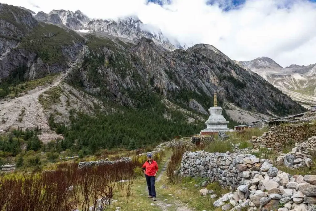 It was time to get a little closer to Mount Genyen and its glacier and we headed off on a late afternoon hike up the hill. It was hard-going due to the altitude, and we made frequent stops but I made it to the top for 360º views of the mountains and over the village.