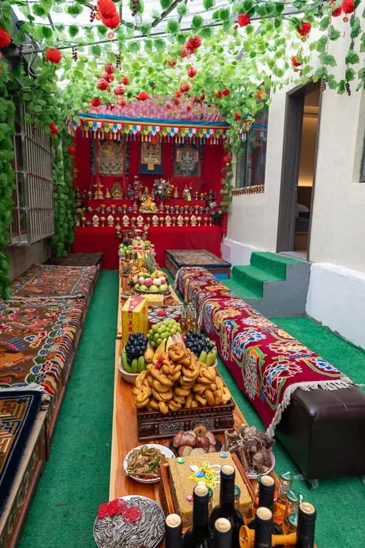 We stayed two nights at Xingshan Ji Hotel, a modern, newly-opened, hotel just outside town. My room had far-reaching views of the grasslands and mountains and I woke to see yaks grazing outside. I was pleased to have in-room oxygen given the higher altitude in Tagong.