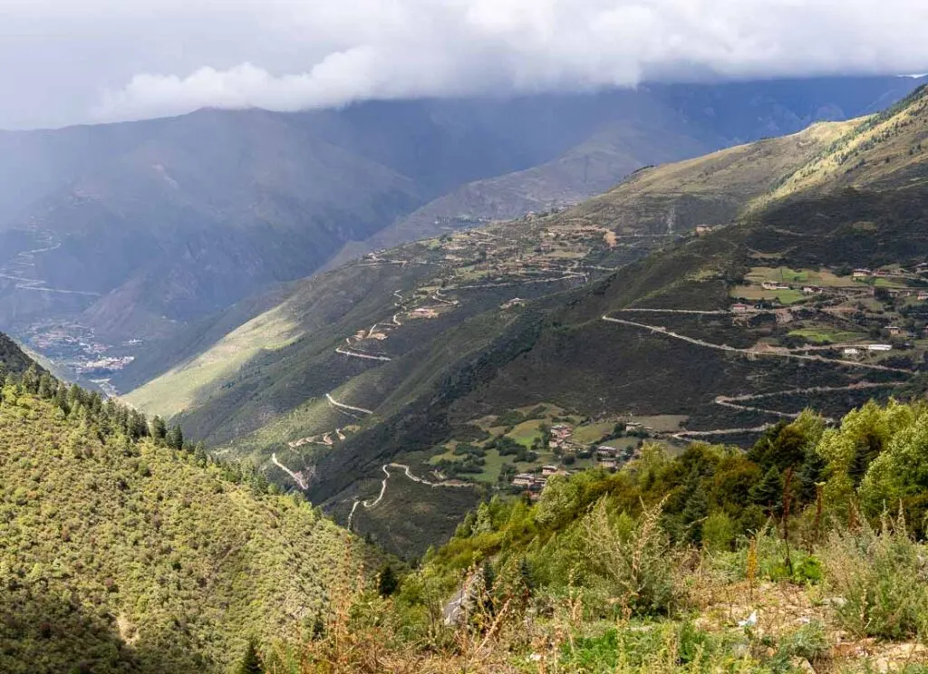 Sadly, we weren’t lucky enough to see blue sky reflections to get ‘the eye’s’ full watchful impact. That’s best enjoyed from drone footage. Continuing we passed more beautiful Alpine scenery along the southern route of Mount Genyen before arriving in Zeba village.