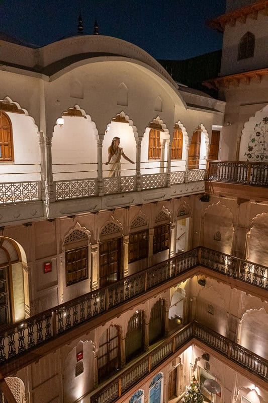 I’ve never worn a sari before, and neither had most of the group, so we gathered in one of the rooms for help with dressing. There’s far more fabric involved than you might expect, and there’s no way I would have managed to drape it properly on my own. With a little guidance, and a lot of laughter, we got there. The men in our group wore traditional kurta pyjama. Together we made quite a colourful sight.