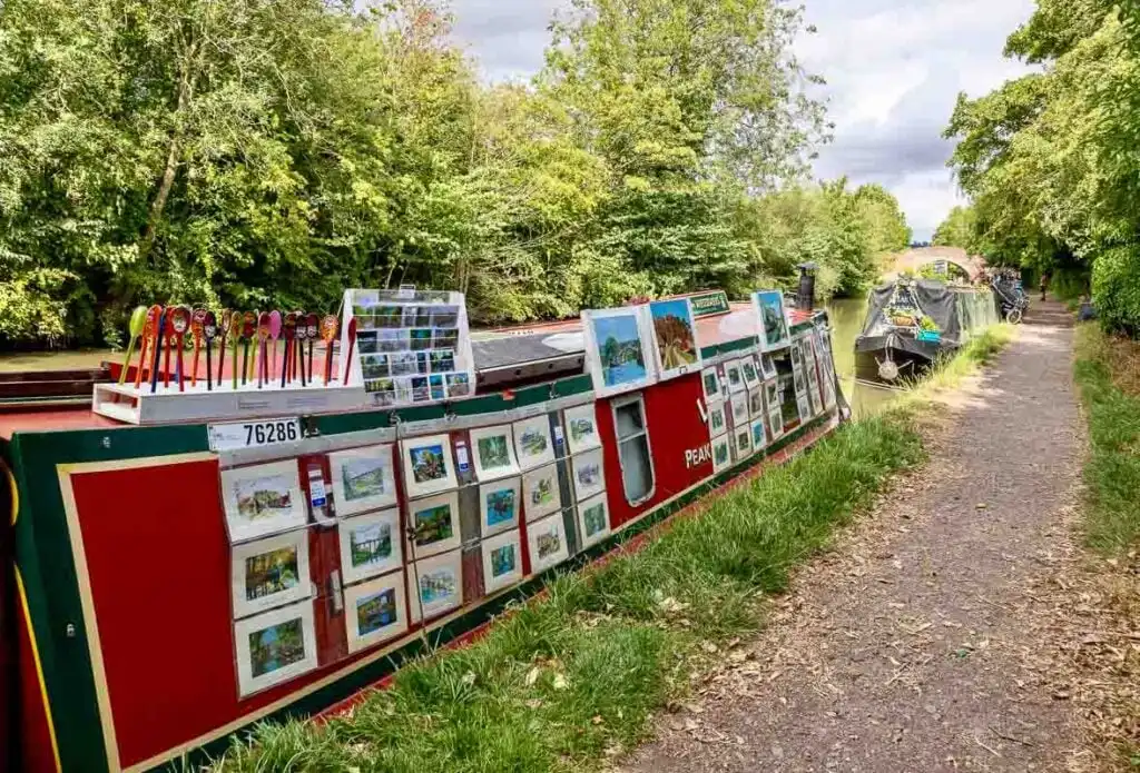 We met more friendly and interesting people as we wandered the towpath. I had a lovely chat with ‘Artist on the Waterways‘, Sylvie Hankin, from Kent. Sylvie sells her incredible paintings and painted canal ware from her narrow boat, possibly the only floating gallery I’ve ever come across.