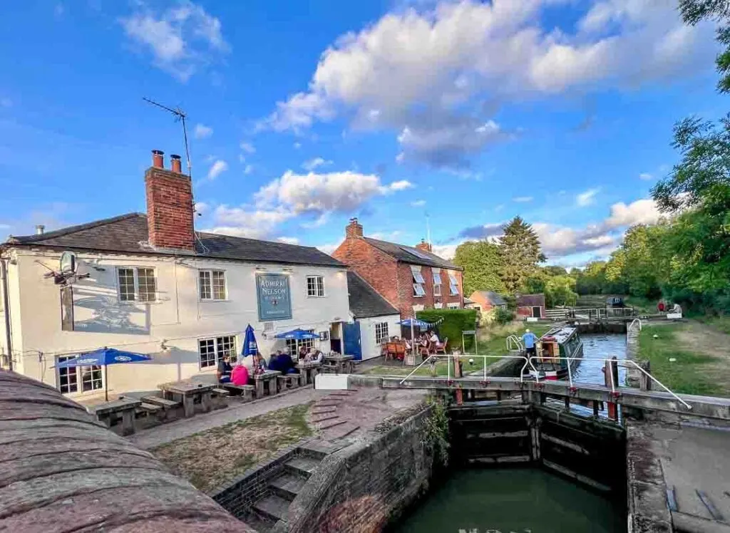 For dinner, the Admiral Nelson, a pretty, historic canal-side pub located at Lock No. 3, was calling. Just a 20-minute walk along the towpath and over the bridge. The pretty pub garden is a good spot for watching the narrow boats pass through the lock.